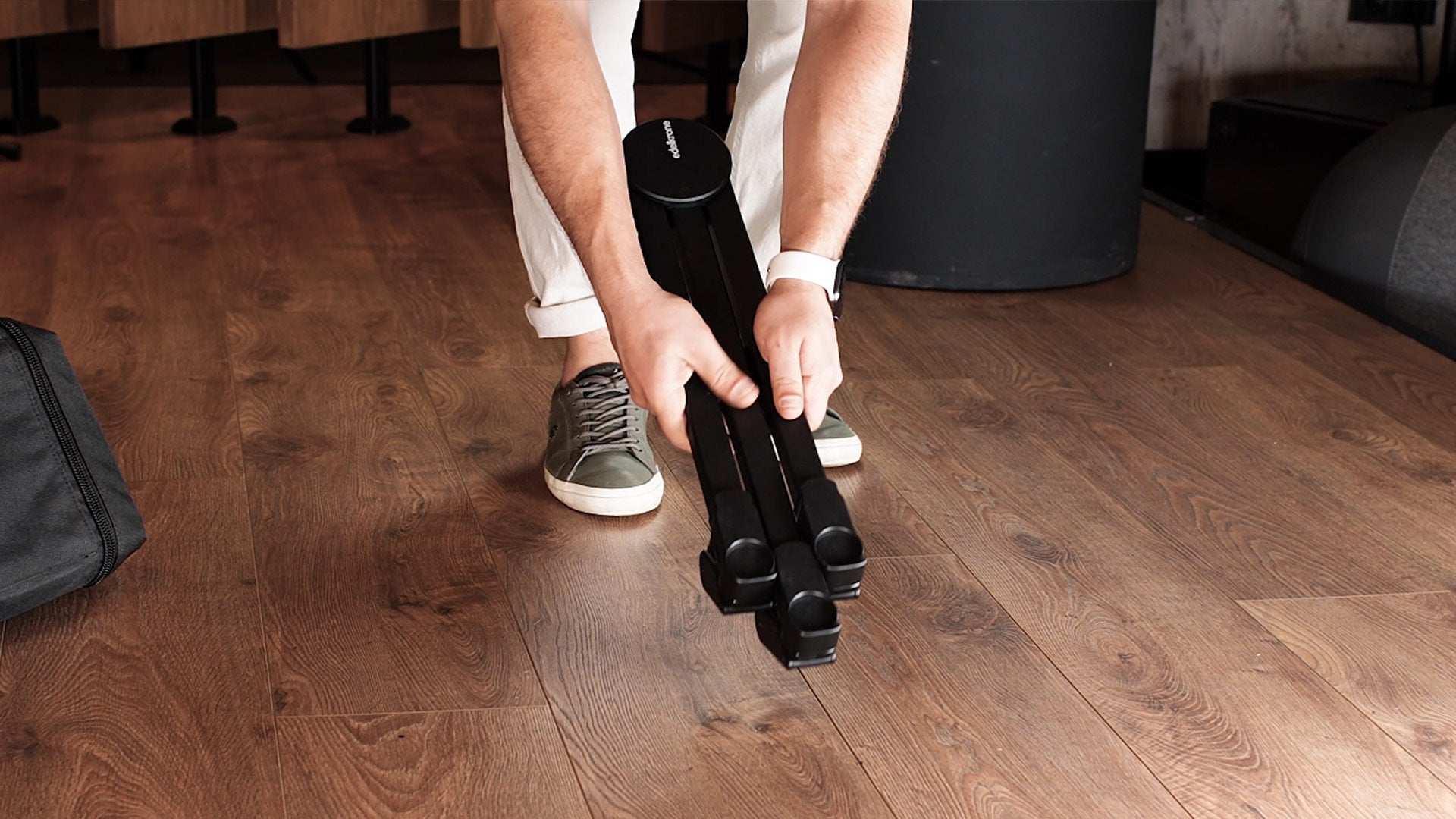 Tripod Wheels are specially optimized for Tripod X. Simply align Tripod X on the Tripod Wheels, secure the feet with the Velcro straps, and effortlessly move your entire setup around the studio, regardless of its weight.